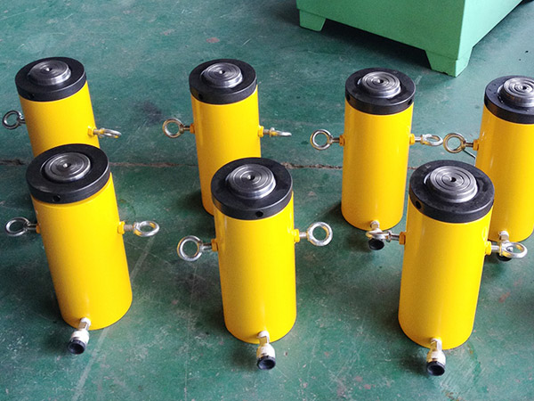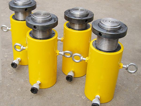 d)新的或久置的油壓千斤頂,因油缸內(nèi)存有較多空氣,開始使用時,活塞桿可能出現(xiàn)微小的突跳現(xiàn)象,可將油壓千斤頂空載往復(fù)運動2-3次,以排除腔內(nèi)的空氣。長期閑置的千斤頂,由于密封件長期不工作而造成密封件的硬化,從而影響油壓千斤頂?shù)氖褂脡勖,所以油壓千斤頂在不用時,每月要將油壓千斤頂空載往復(fù)運動2-3