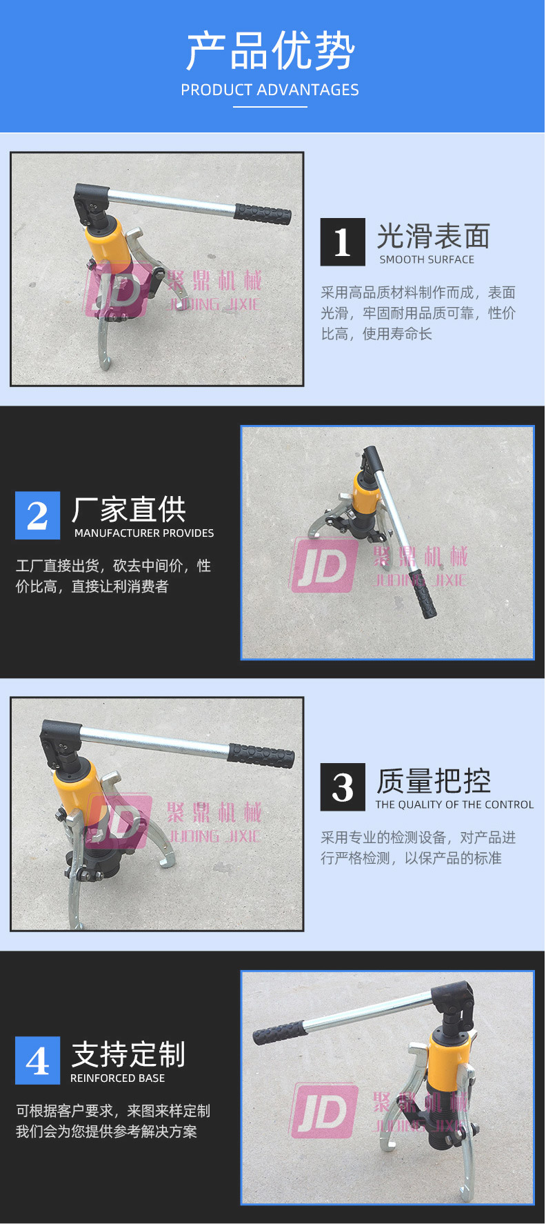 液壓拉馬是以液壓起動桿直接前進(jìn)移動,故推動桿本身不作轉(zhuǎn)動。鉤爪座又可隨螺紋直接作前進(jìn)后退之調(diào)距,操作時只要把手前后小幅度擺動,油壓起動桿前移,鉤爪相對應(yīng)后退,把被拉物體拉出。